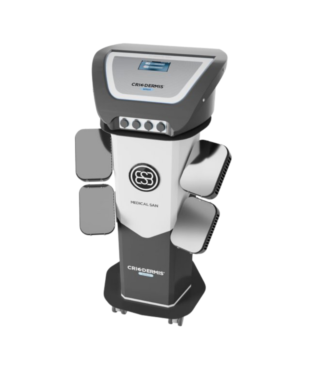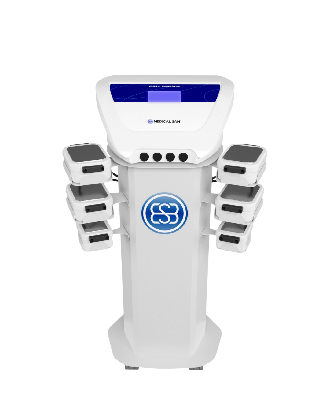 Medical San é um equipamento de criolipólise de placas que usa o frio controlado para eliminar células de gordura (adipócitos) de forma não invasiva, promovendo remodelação corporal e redução de flacidez, sem sucção, com alta tecnologia de placas que otimizam o tempo e maximizam a área de tratamento, sendo uma solução eficaz e moderna para gordura localizada