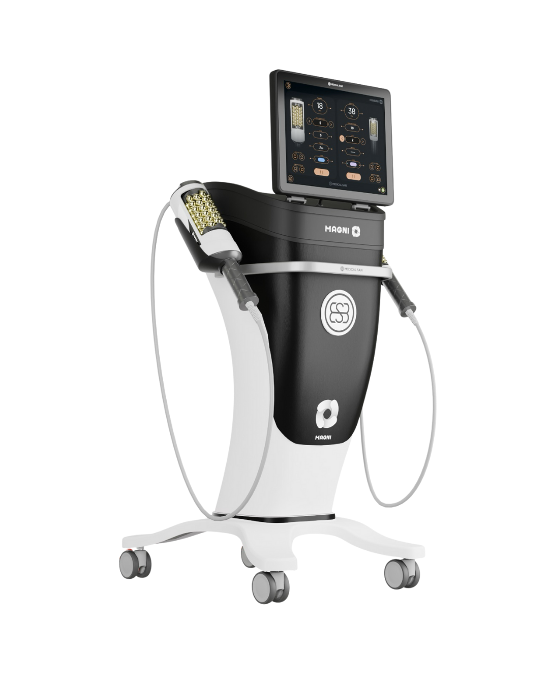 O Magni da Medical San é um aparelho de endermologia positiva não invasiva que usa um roller de esferas giratórias 360° para criar microvibrações e amassamento na pele, promovendo tonificação, firmeza, drenagem linfática, redução de celulite, gordura localizada e rejuvenescimento, com a adição de cromoterapia para potencializar os resultados, sendo um equipamento versátil para tratamentos corporais e faciais